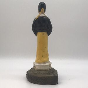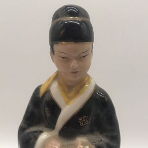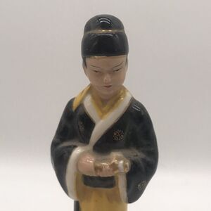 Antique Asian, Chinese or Japanese, 10 Inch, Porcelain Man Figurine with Brass Base. This was once a Table Lamp, but is missing the Lamp rod and electrical pieces. Probably easy to rewire and replace the missing parts. Looks handpainted and has some Gold Embellishments. This was found in my Grandparents old barn, along with several other items from the 40s era, so I am not going to try cleaning, as I do not know what I'm doing in this area. Any info you can share with me would be appreciated. Makes an awesome Asian Figurine as an accent piece as well.