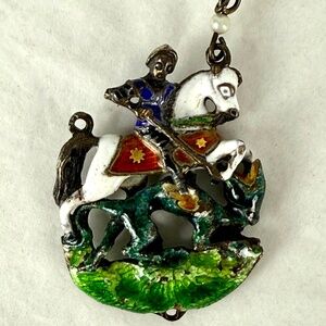 Antique Austro-Hungarian Pendent Silver w Colorful Enamel St George and Dragon