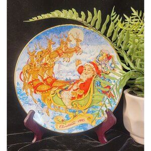 Antique Avon Porcelain Collector's Plate "Special Christmas Delivery." Crafted in 1993, this collectible is over 30 years old and in mint condition. This plate is crafted from high-quality porcelain and trimmed in 22K gold, a special addition to anyone's holiday decor. Approximate measurements: 8 in x 8 in x 0.75 in. Please see the provided photos for further details.