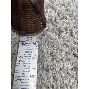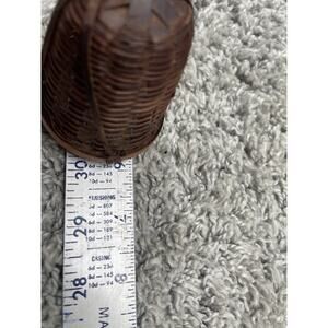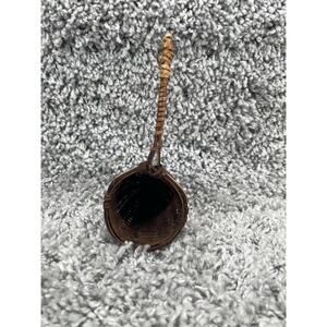 This antique bamboo basket style tea strainer infuser is a handmade kitchen utensil that features a solid round shape. The small size and brown color make it a unique and stylish addition to any tea lover's collection. Made from durable bamboo material, this basket infuser is perfect for steeping tea leaves and creating a traditional tea experience. This one-piece set from the 1980s exudes rustic charm and is a must-have for those who appreciate vintage kitchen tools.