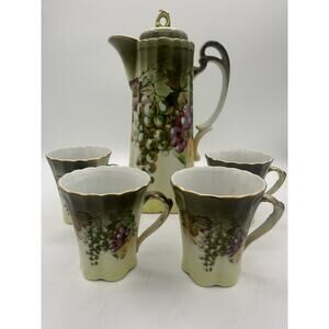 Antique Barvaria Original A&C Chocolate Teapot Set With Pitcher Groovy Set Of 5