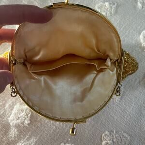 Antique Beaded Gold Tone Mini Evening Bag Clasp Closure Chain Strap Glam Regency