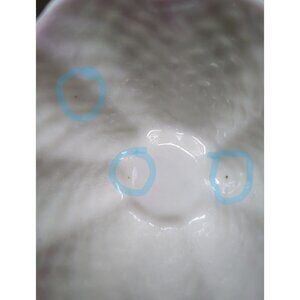 There are three very small dots on the inside of the cup, and very small paint bubbles on the edge. There are part of the hand made process  Please see the last photos.