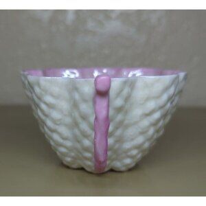 This antique Belleek tea cup is a rare find with its second black mark and unique pine cone design. The delicate porcelain material and beautiful pink color make it a perfect addition to any collection. The cup is in excellent condition, free of any flaws, and stands at 2 inches tall with a width of 3.5 inches. The vintage tea cup was manufactured in Ireland in 1891 during the time period of 1891-1926.  This tea cup is perfect for any occasion and can add a touch of elegance to any tea party.