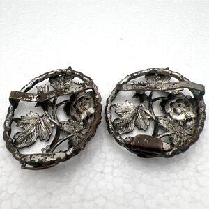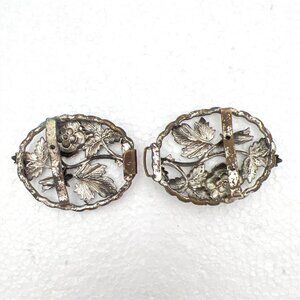 Antique Belt Sash Buckle Gilded Brass Art Nouveau Open Cut Intricate Leaf Flower