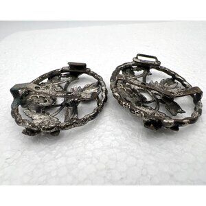 Some of the gild has worn off, it has Some patina and minor wear consistent with age. The fabric holders in back are bent, see pictures. Approximate size: 4 inches length x 1.5 inches width.