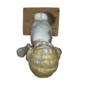 Antique Bisque Doll with Wire Jointed Arms. 3" tall. Hand-painted hair & face. Mounted on a small piece of cardboard. Minor paint loss, no chips or cracks.