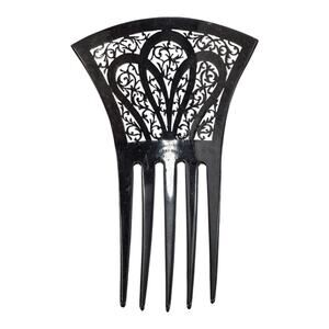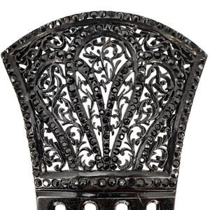 Antique black filigree black celluloid hair comb in Victorian mourning style likely made in late Victorian era.