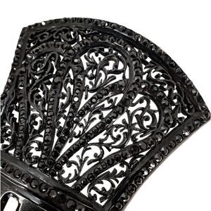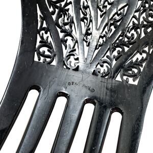 Antique Black Filigree Carved Celluloid Large Hair Comb 5 3/4” Signed BEST-HOLD