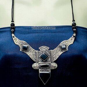 Antique Black Nepalese Triangular Pendant Necklace, Boho Chic Necklace