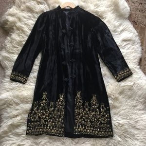 This is a one of a kind item that I bought in London. Its vintage but in extremely durable/great shape. It is beautifully made, sturdy, and an absolute show-stopper. It looks amazing over jeans, or over any kind of long dress. Its basically one of those pieces that are almost impossible to find. You can also wear it as a dress.