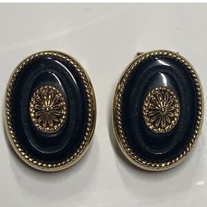These elegant black and gold oval earrings add a touch of sophistication to any outfit. Perfect for both casual and formal occasions.