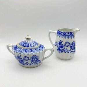 Antique Blau China, Oscar Schaller & Co, Bavaria Coffee Pot with Cream & Sugar