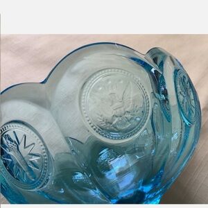 This exquisite Antique vase in a vibrant blue hue features a scalloped rim and medallion-like impressions, adding a touch of vintage charm to any space. Its translucent glass allows light to enhance its intricate design, making it a standout piece in your decor. Perfect for showcasing flowers or as a standalone accent, this vase embodies elegance and timeless beauty.