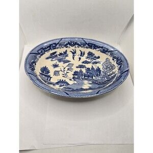 Antique Blue Willow Oval Veg. Serving Bowl 10 Inch, Japan Chip