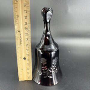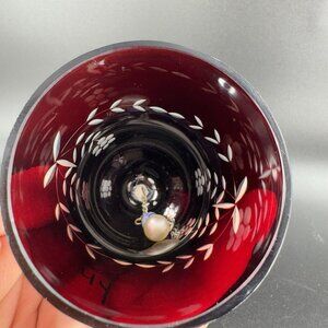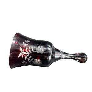 Antique Bohemian Czech Glass Crystal Cut To Clear Ruby Red Flower Pattern Bell