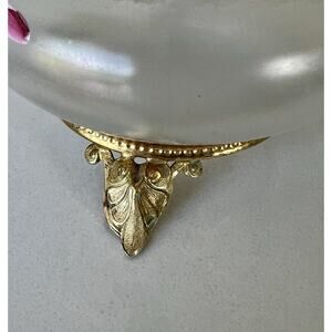 Antique Bohemian Glass Trinket Powder Box Hinged Lid Lotus Flower Brass Footed