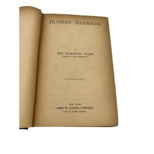 Antique early 1900s book "Robert Elsmere" by Mrs. Humphrey Ward. This copy of the book contains advertisement for Singer Sewing Machines in the front and several interesting ads in the back of the book. The book was published by the John W. Lovell Company. It has 680 numbered pages and measures approximately 7.5" x 5".