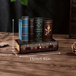 This wood desk organizer features a charming book-themed design with a hidden drawer and compartments for pens, pencils, or small items. Its antique book style adds a decorative touch while keeping your desk neat and organized. Perfect for home or office use, it combines functionality with rustic elegance.