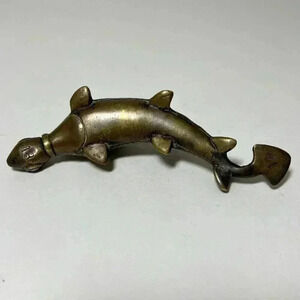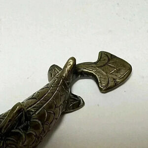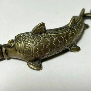 This antique brass fish Surma Dani eyeliner is a rare collectible item that will add a touch of vintage charm to any collection. Crafted with intricate details, this eyeliner is a must-have for any vanity accessories collector. The fish Surma Dani design is unique and exquisite, making it a standout piece in any display.