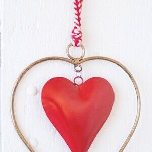 Antique Brass & Red Heart Door Hanger