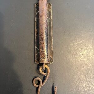 Antique, Vintage Brass Spring Scale. Warranted and Made by Morton and Bremner New York. Brass Spring Scale Length is 6.25in. Total Length with ring and hook is 10.75in. Please zoom in on photos.