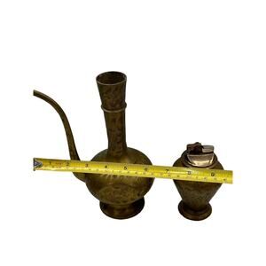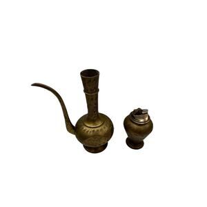Antique Brass Table Lighter And Vase SET Etched Traditional Style