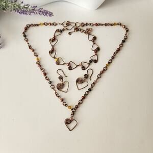 This delicate wire-wrapped beaded necklace is handcrafted with care, the chain is handmade featuring copper wire, tarnish-resistant, and gold, bronze, brown glass Czech seed beads.