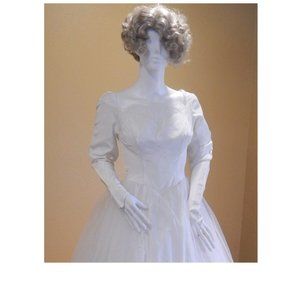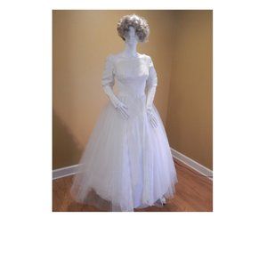 1950's -GREAT CONDITION-1950's CUSTOM SATIN/LACE WEDDING DRESS not white "twilight" /over 60yrs old/petticoat not included(worn only one time) xxs petite-waistline 22 inch