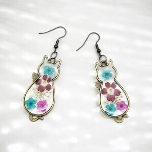 #CatEarrings #DriedFlowerJewelry #BohoEarrings #VintageStyle #MosaicFloral #BronzeEarrings #DangleEarrings #WomensAccessories #GiftForHer #UniqueJewelry