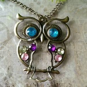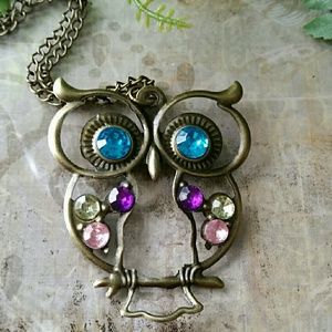 If you're an Owl lover then you will love this fashionable Owl pendant necklace. Adorned with pretty rhinestones. Slip on chain, hang length is about 11 inches on a 22 inch chain