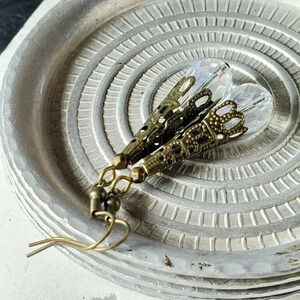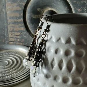 Antique Bronze Filigree Faceted Clear Luster Crystal Teardrop Earrings