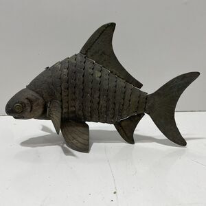 Antique Bronze Fish Statue 8” Detail Craftsman Made Figure RARE W/ Moving Body