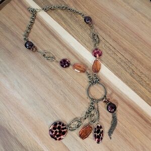 • Style tags: statement necklace. earth tones, Jewel tones, chain, boho, chic, bohemian, casual, leopard print. animal print