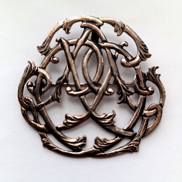 #letter #V #art nouveau #sterling #silver #brooch #pin #pendant #vines #leaves #antique #vintage #celtic #early 20th century