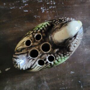 This antique Brush-McCoy flower frog showcases intricate craftsmanship in its hand-painted duck design. A unique addition to decor or floral arrangements.