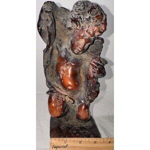 Antique Burl Wood Handcarved Cherub Sculpture