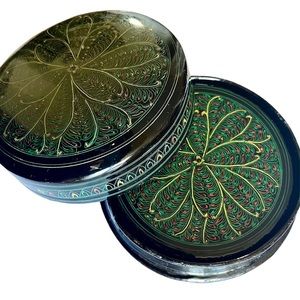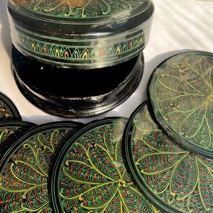 Antique Burmese Coaster Set Black Lacquered Box Vintage Handmade Asian Drinkware