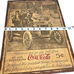 Antique COCA-COLA AT ALL Fountains Model T Car Poster Wood Wall Hang 14"x 10.5"