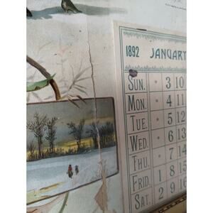 Antique Calendar with Days on the Side - 1892 - Clothing Advertisement - Damaged