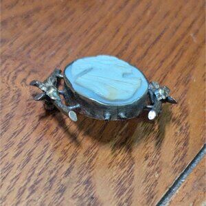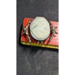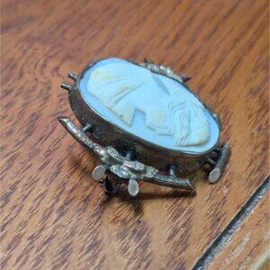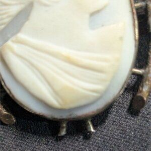 Slight tarnishing on frame; cameo detailing intact. Broken piece on frame see photos