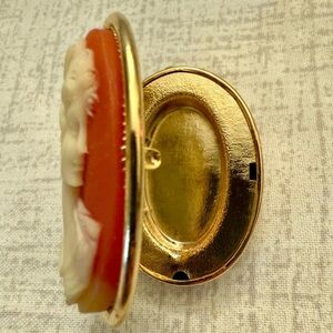 Add timeless elegance to your collection with this beautiful antique cameo locket pin brooch, designed with both form and function.
