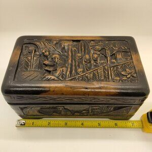 Antique Camphor Wood Intricately Hand Carved Box Jewelry Trinket Early 1900's
