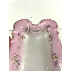 Antique Carl Tielsch C.T. Germany Butter Dish Pink Floral Gold Trim Handpainted