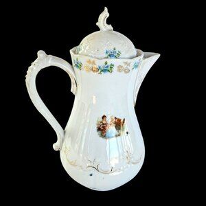 Antique Carlsbad Austria Chocolate Pot Courting Scenes 40 Oz Gilt Transferware