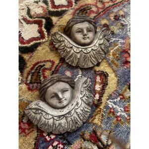 • Type: Carved wood cherub / putto wall plaques (pair)