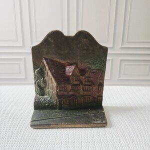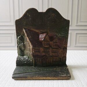 Antique Cast Iron BOOKENDS BOOK ENDS SHAKESPEARE'S House Building Home