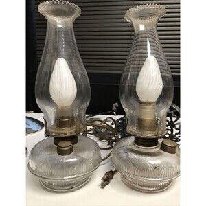 Antique Cast Iron Double Wall Mount Oil Lamp Bracket with two Oil Lamps And Plug