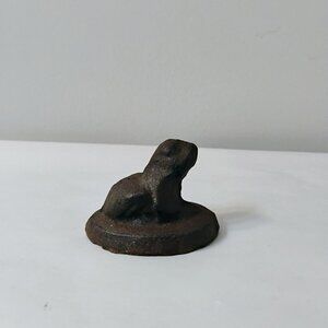 Antique Cast Iron Frog Paperweight, Metal Animal Figurine Mini Door Stop