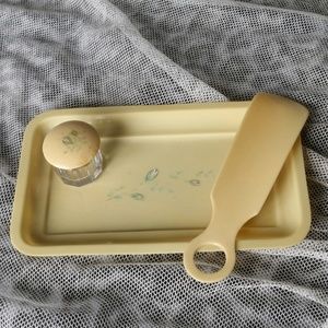 Antique Celluloid Rose Dresser Tray Jar with Lid & Shoehorn Set Circa 1900's